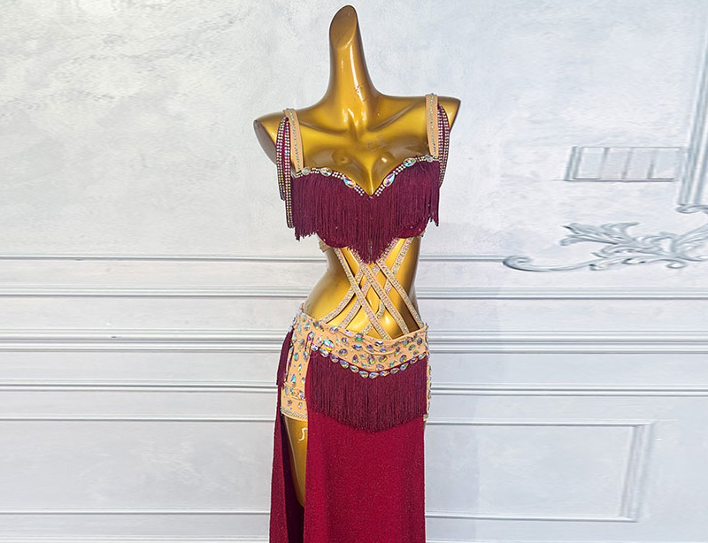 安晴 #1281上衣+流蘇裙套裝 國標 拉丁 相關問題可洽詢客服LINE:0927306836 肚皮舞表演 成果展 練習服